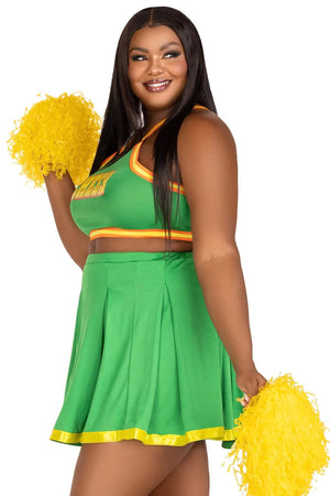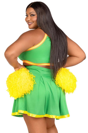 Lead your team to victory in the 3 Piece Bring It Baddie plus size Halloween costume. This game-ready cheerleader costume features a crop top with cheer logo, pleated skirt, and matching pom poms. Pair up with a friend for a fun Halloween costume look inspired by everyone’s favorite movie!