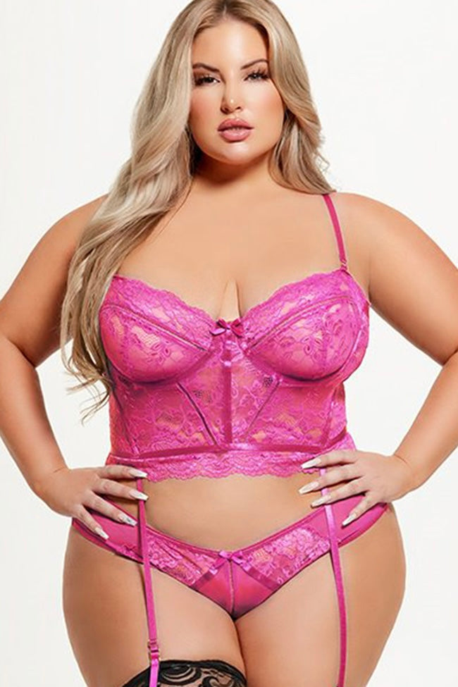 Plus size Harlow lace and mesh bustier Fuchsia