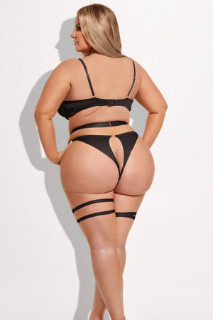 This plus size Helena bra, garter, and hipster set in black offers a chic and stylish option for fuller figures. The set features a supportive bra, adjustable garter, and comfortable hipster panties, perfect for a flattering and confident look. Expertly designed for a comfortable and secure fit, this set is a must-have for any lingerie collection.