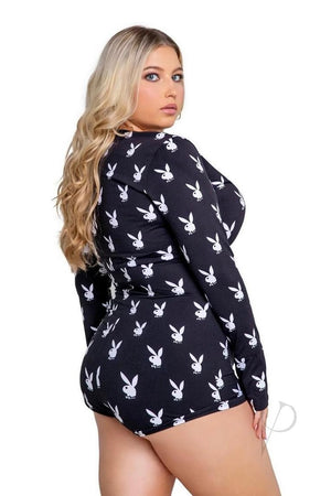 PLAYBOY ROMPER WITH BUNNY LOGO AND SNAP CLOSURE