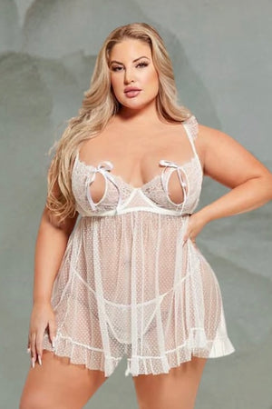 Expertly designed for plus size bodies, the Portia babydoll and g-string set is the perfect balance of comfort and allure. Made with high-quality materials, this lingerie set is both flattering and sexy, making it a must-have for any intimate occasion.