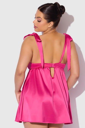 Introducing the Plus Size Rosalie Satin and Embroidered Babydoll - a luxurious and elegant lingerie piece. Made from high-quality satin and adorned with delicate embroidery, this babydoll will enhance your feminine curves and make you feel confident and sexy. Perfect for a special occasion or for adding some glamour to your everyday routine.