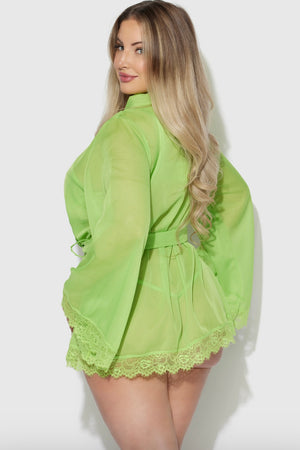 Plus size Shavon robe , bralette and g-string lime