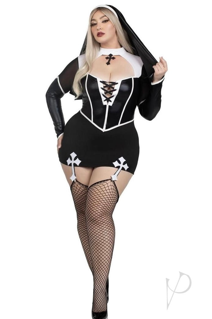 2 PC Holy Hottie, includes boned garter dress with cross accents and nun habit.