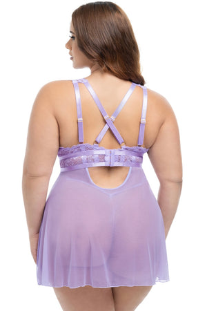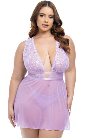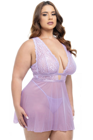 Indulge in elegance and comfort with our Stassi Soft Cup Lace Babydoll, designed exclusively for curvy figures. This dreamy piece features delicate floral lace cups with a plunging neckline, offering a flattering fit and gentle support. The sheer mesh skirt drapes beautifully, enhancing your natural curves while adding a touch of allure.Perfect for special nights or just feeling fabulous, the Stassi Babydoll is a must-have addition to your lingerie collection. Feel confident, sexy, and effortlessly beautiful.