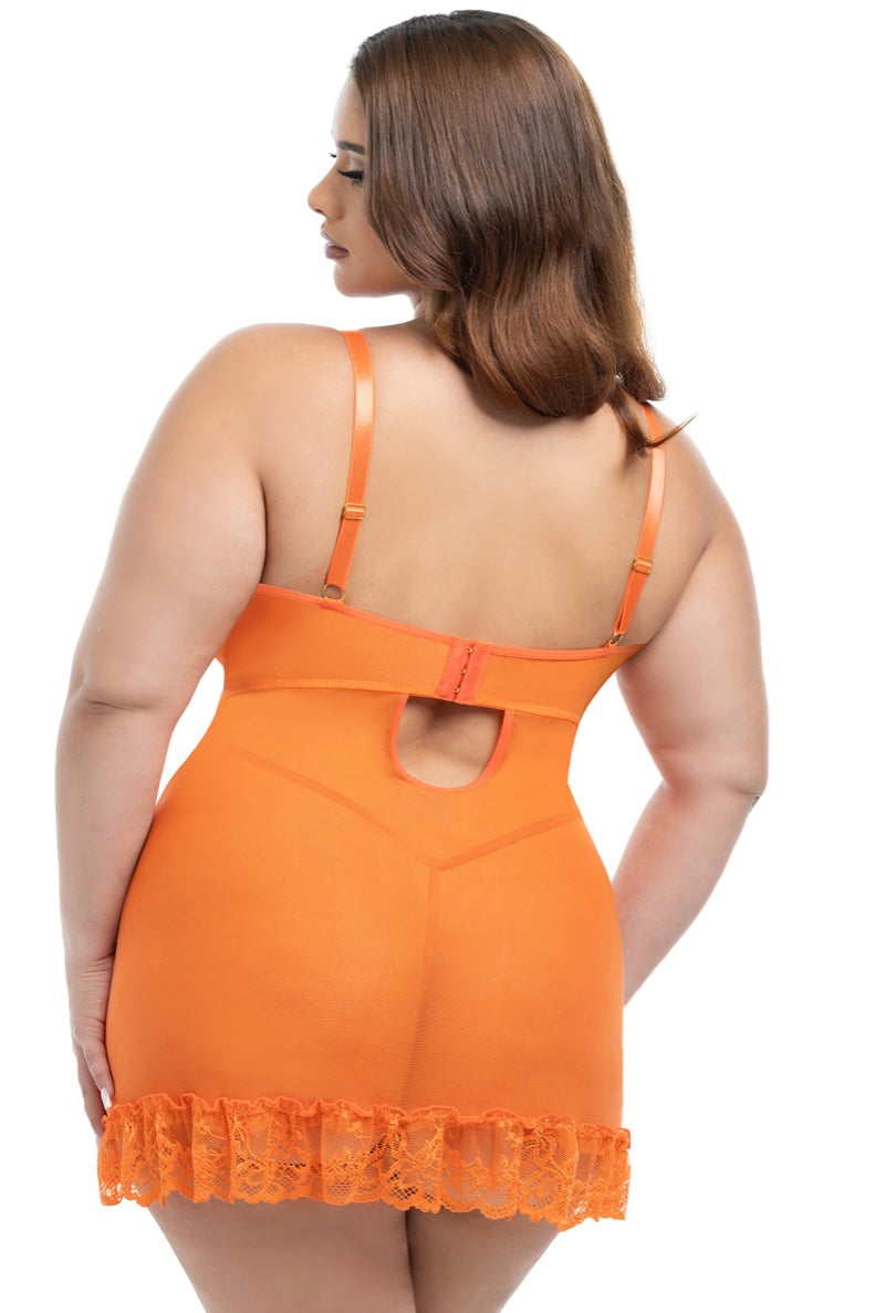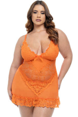 Drape your curves in our valentine lace babydoll ,designed with a seductive soft cup and crafted from floral lace and the softest mesh, this babydoll is designed to highlight your curves the right places. features a flirtatiously bow at the center-front, this babydoll includes a matching g-string.