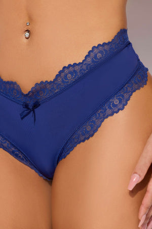 Vera micro and lace trim g-string blue